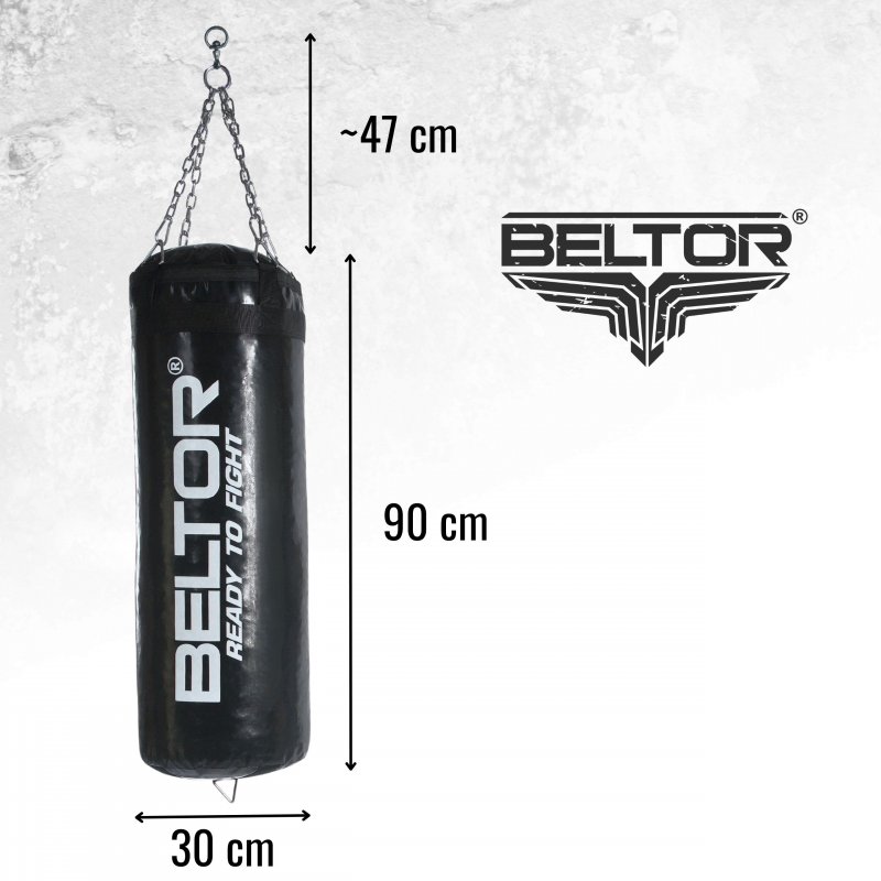 Worek polecany jest wszystkim sportowcom trenującym sztuki walki. Wykonany został z niezwykle mocnego i bezpiecznego materiału o nazwie Plavil. Materiał ten jest niezwykle odporny na rozciąganie i rozrywanie. Worek obszyty został specjalnymi trójskrętnymi nićmi rdzeniowymi z powlekaniem ślizgowym, dzięki temu nie przecierają one tkaniny i tworzą bardzo mocne połączenie. Worek posiada lekki, czteroramienny stalowy łańcuch zakończony okrętką, która zapobiega krzyżowaniu łańcucha podczas obracania worka. Wymiary worka 90 x 30cm i waga 19kg jest odpowiednia również dla dzieci i młodzieży