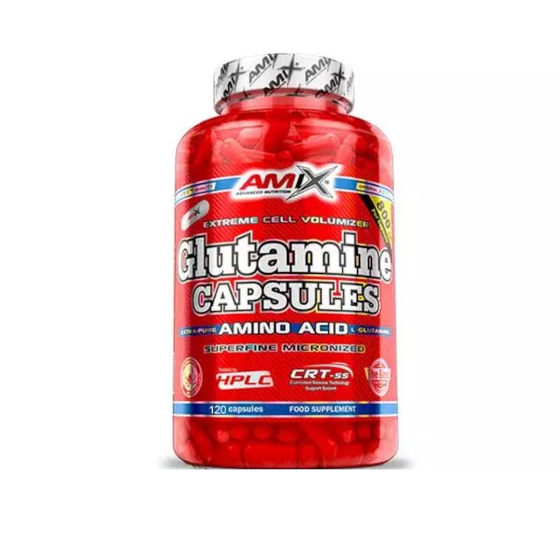 Skład w 6 kapsułkach: L-glutamina 48000 mg, kapsułka żelatynowa (żelatyna, woda, kolorowy węglan wapnia), stabilizator: hydroksypropylometyloceluloza (Methocel®), środki przeciwzbrylające: stearynian magnezu, krzemionka.