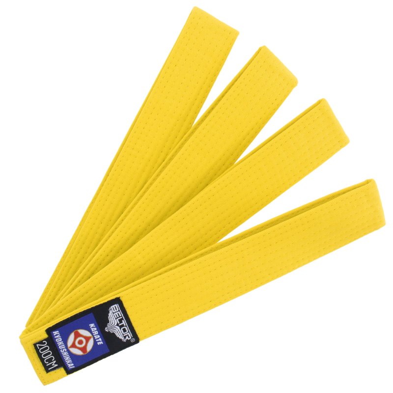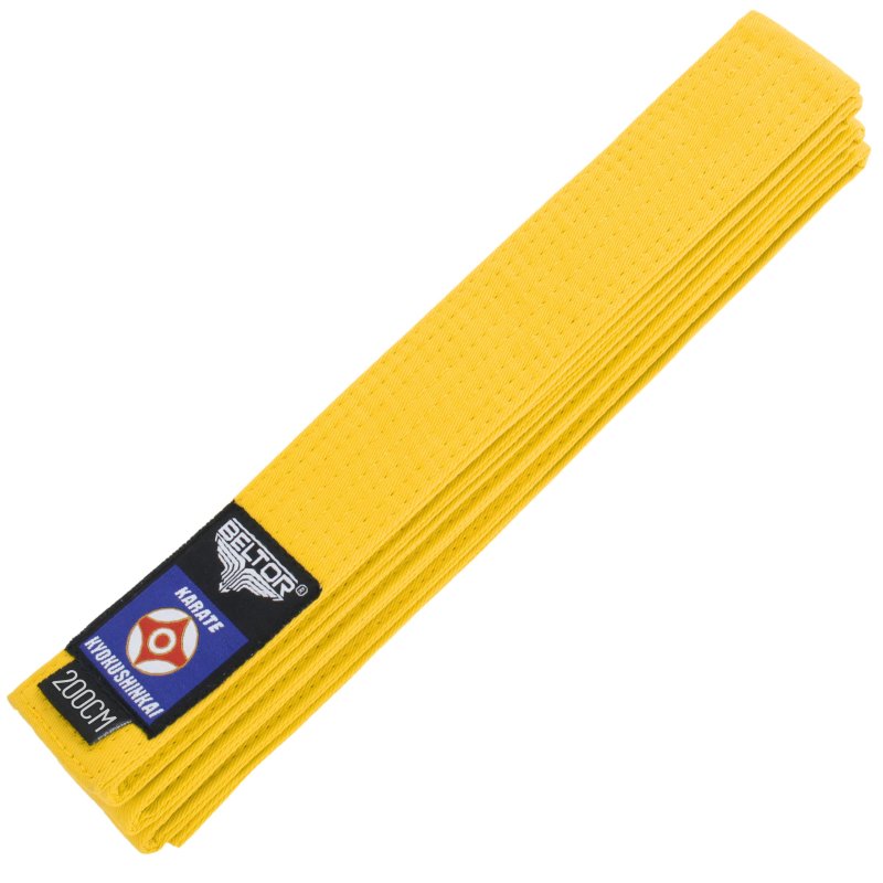 Kolor żółty nawiązuje do czary splotu słonecznego, której żywiołem jest Ogień – symbol kreatywności i energii fizycznej. Żółty pas jest ostatnim z grupy początkujących. Karateka posiadający żółty pas rozumie, że siła uderzeń czy kopnięć zależy nie tylko od siły mięśni, ale również od wyzwolenia siły wewnętrznej, która pochodzi z brzucha i związana jest z punktem hara. Pokorne doskonalenie swoich umiejętności pozwolą na uzyskanie pasa w kolorze zielonym.
