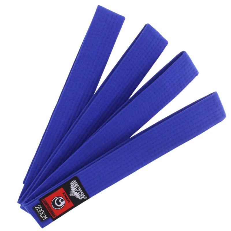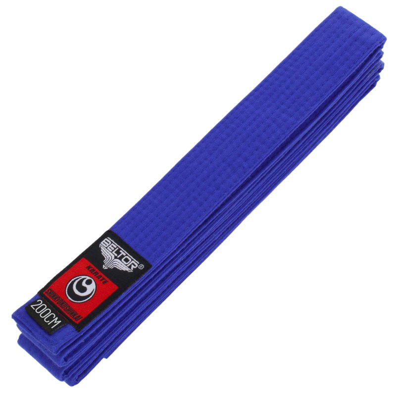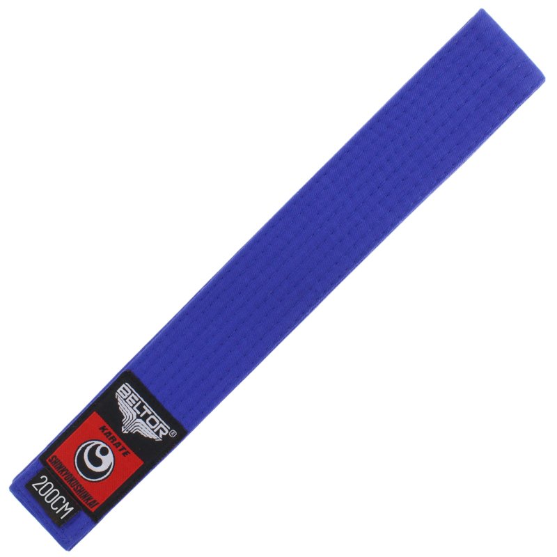 Jest to trzeci etap na drodze do doskonalenia umiejętności karate. Niebieski nawiązuje do drugiej czakry, która znajduję się w okolicach kości krzyżowej. Jej żywiołem jest Woda - symbol płynności oraz umiejętności przystosowania się. Posiadanie niebieskiego pasa oznacza naukę koordynacji technik, giętkości ciała oraz płynności ruchów. Jest to etap treningu panowania nas sobą, swoim umysłem i umiejętnością skrywania emocji. Pokorne doskonalenie swoich umiejętności pozwolą na uzyskanie pasa w kolorze żółtym.