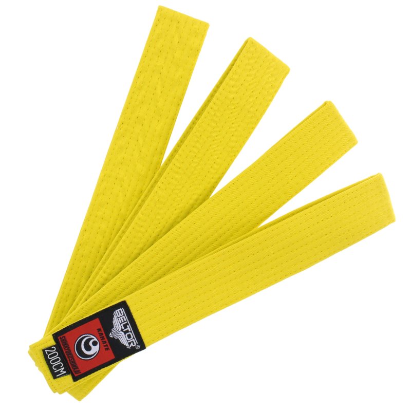 Kolor żółty nawiązuje do czary splotu słonecznego, której żywiołem jest Ogień – symbol kreatywności i energii fizycznej. Żółty pas jest ostatnim z grupy początkujących. Karateka posiadający żółty pas rozumie, że siła uderzeń czy kopnięć zależy nie tylko od siły mięśni, ale również od wyzwolenia siły wewnętrznej, która pochodzi z brzucha i związana jest z punktem hara. Pokorne doskonalenie swoich umiejętności pozwolą na uzyskanie pasa w kolorze zielonym.